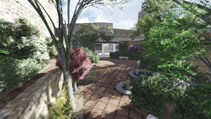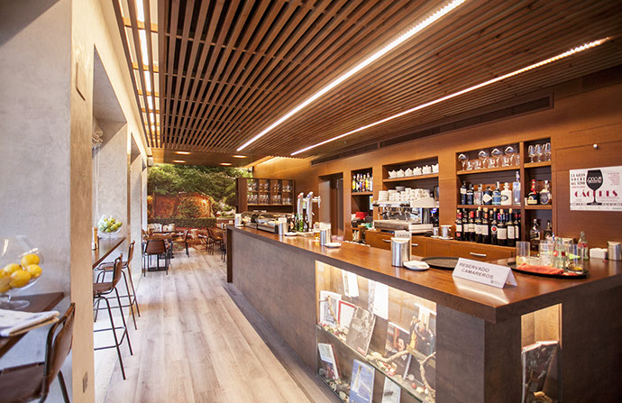 La cafetería sirve de enlace con el jardín trasero, antes prácticamente inaccesible desde la plaza.