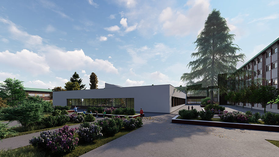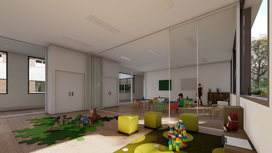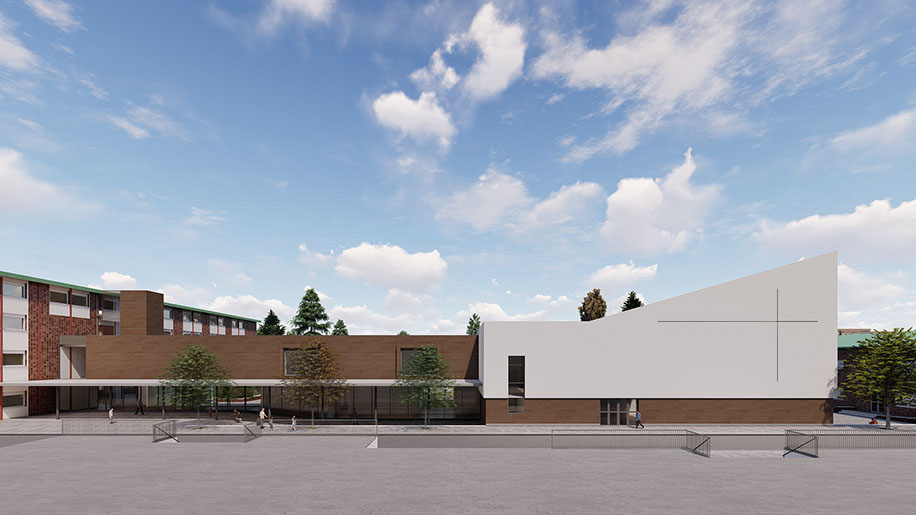 Se proyectan las nuevas aulas de infantil, el patio cubierto para las actividades de estos alumnos y la capilla principal de todo el complejo.