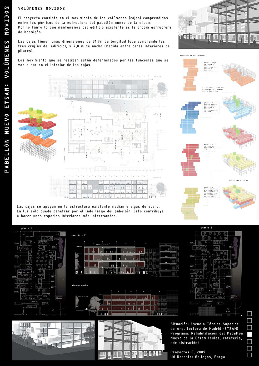 PROYECTO ACADÉMICO, PABELLÓN NUEVO DE LA ETSAM. VOLÚMENES MOVIDOS